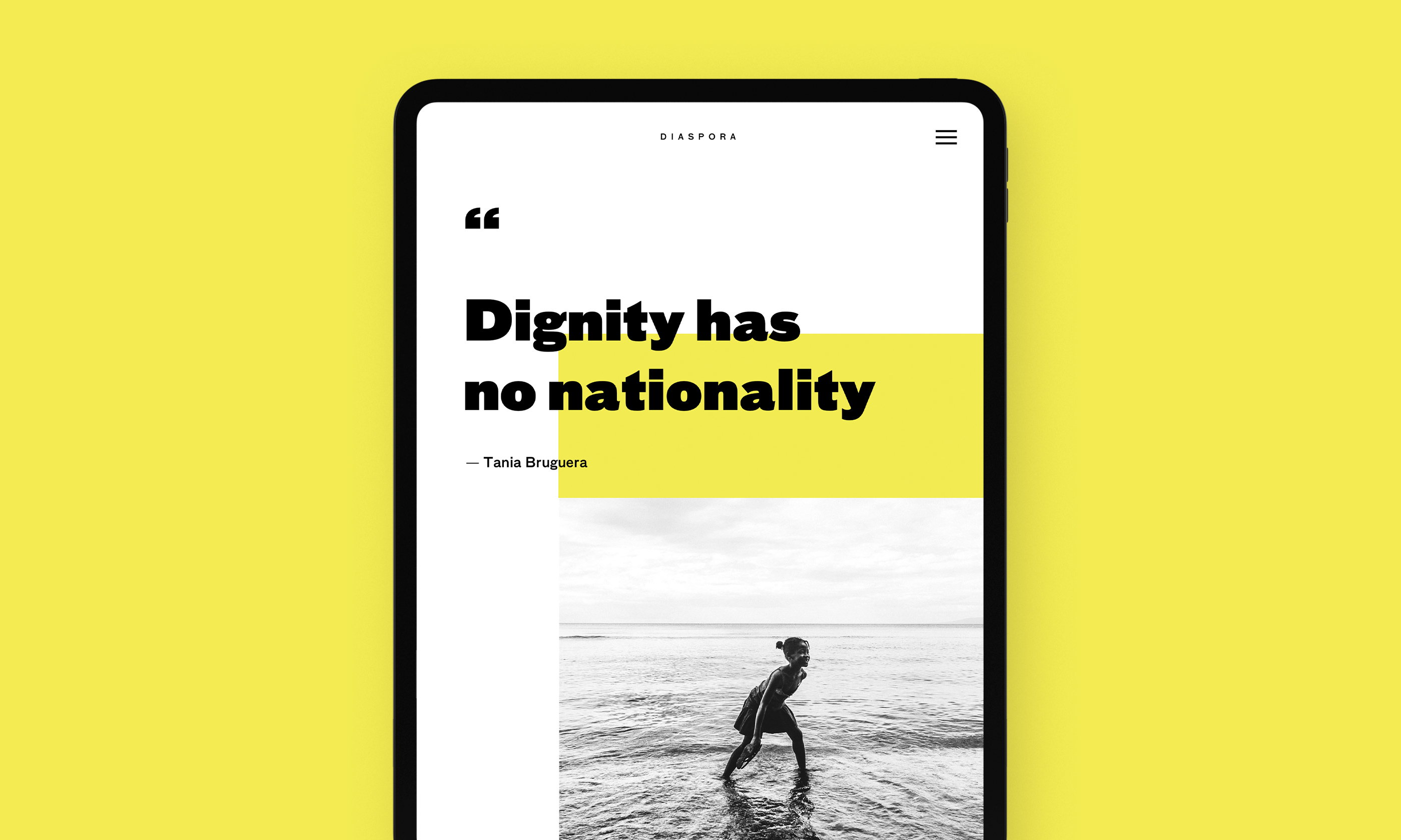 Diaspora was a single-issue publication that explored international patterns of migration, emphasizing its effects on areas such as human rights, cultural relationships, and foreign policies. This issue focused on four Latinx countries in the Caribbean: Cuba, Dominican Republic, Haiti, and Puerto Rico.