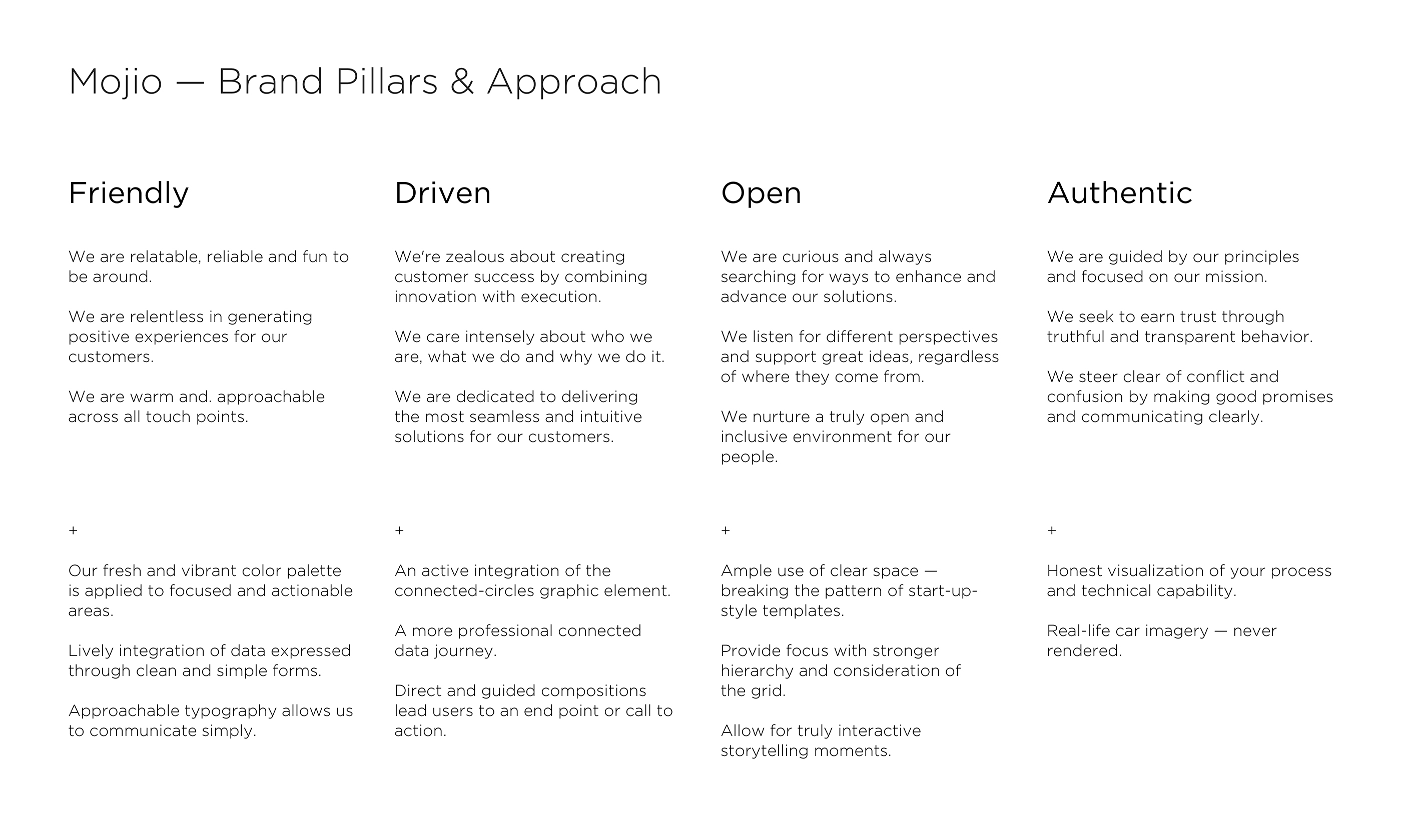 Mojio wanted the tone and language of their website to be friendly, authentic, and contemporary—in line with their brand pillars. I used an editorial approach for the layout of each template.