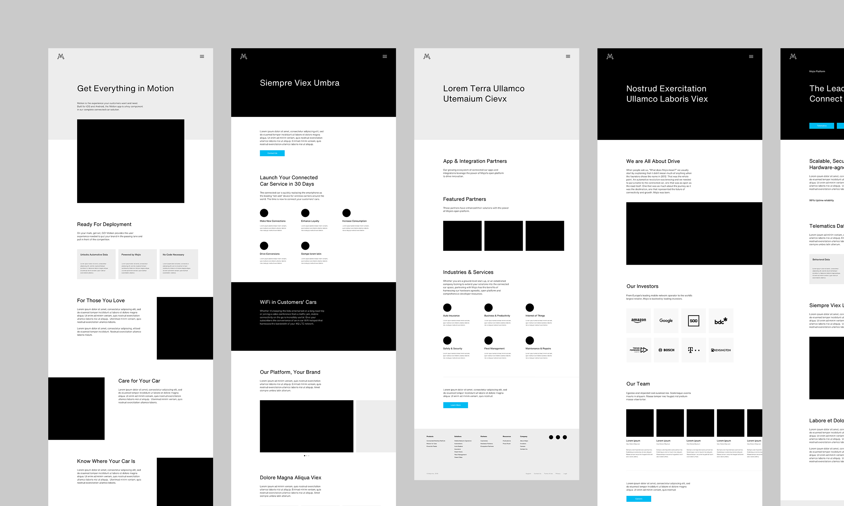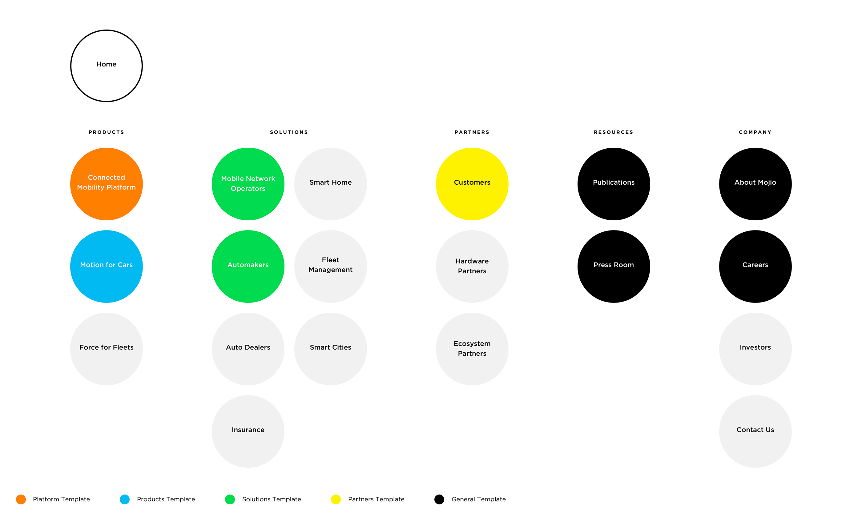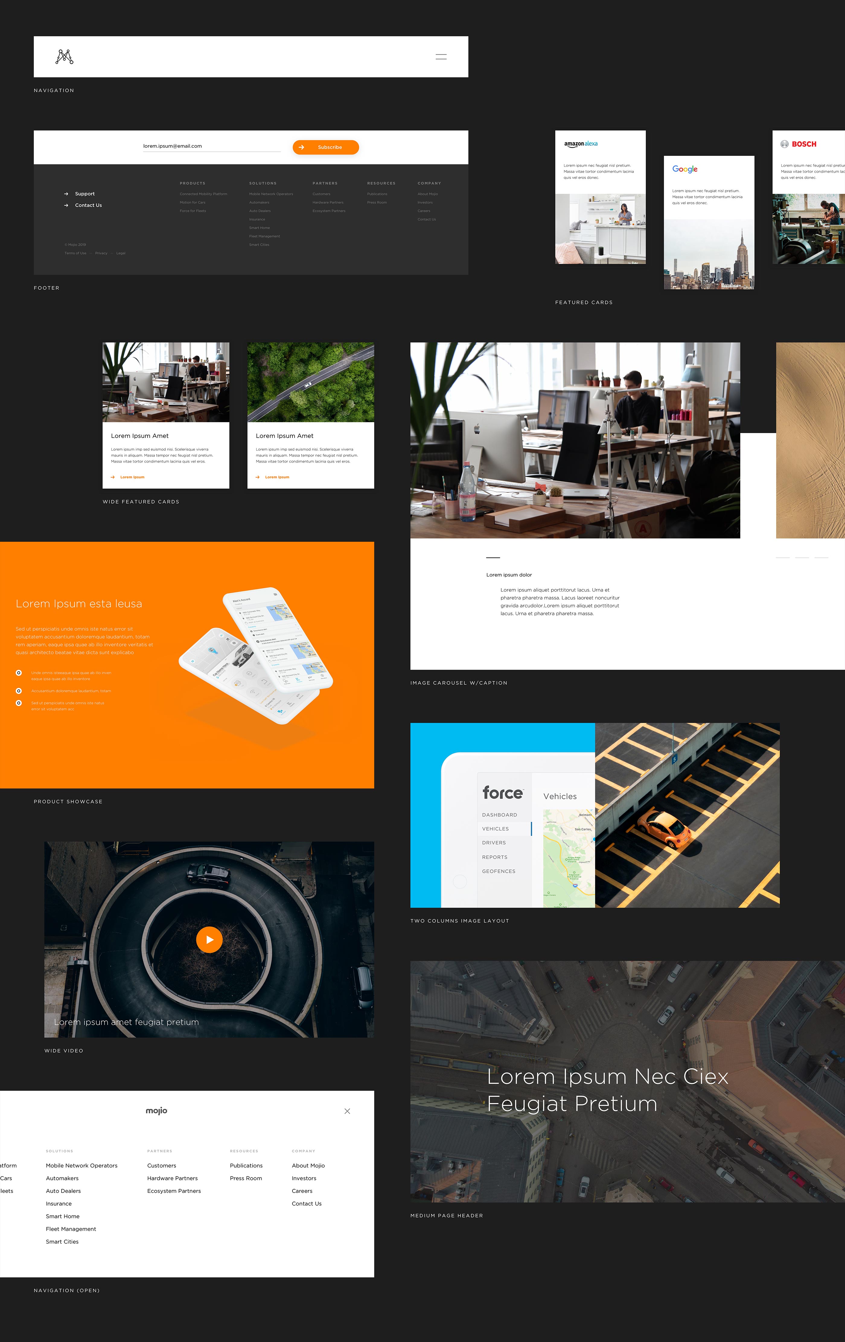 The following five templates make up the foundation of the new Mojio site. After the initial kickoff and ideation phase, I identified which templates to design by using Mojio’s old website and assessing content needs. I then set design priorities with their team.